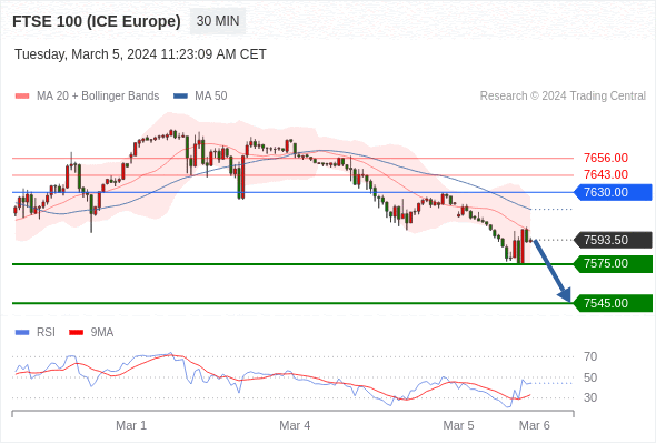 在 7630.00 之下,看跌,目标价位为 7575.00 ,然后为 7545.00 。