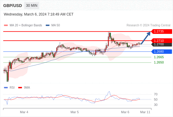在 1.2680 之上,看涨,目标价位为 1.2710 ,然后为 1.2735 。