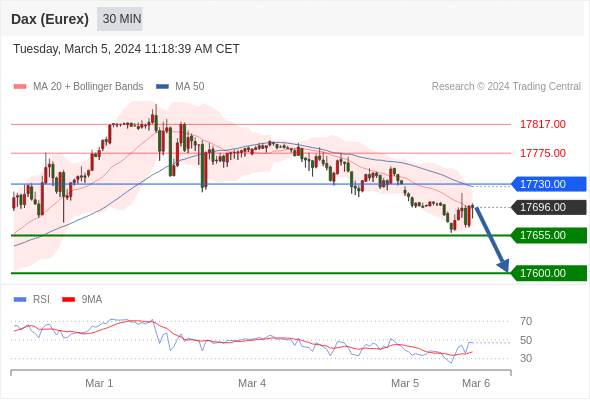 在 17730.00 之下,看跌,目标价位为 17655.00 ,然后为 17600.00 。