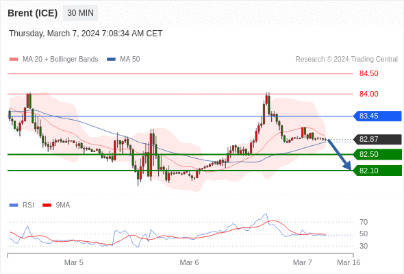 在 83.45 之下,看跌,目标价位为 82.50 ,然后为 82.10 。