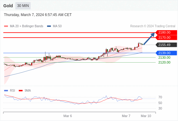在 2139.00 之上,看涨,目标价位为 2170.00 ,然后为 2180.00 。
