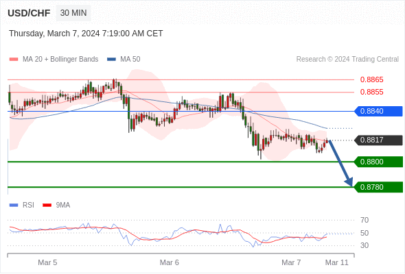 在 0.8840 之下,看跌,目标价位为 0.8800 ,然后为 0.8780 。