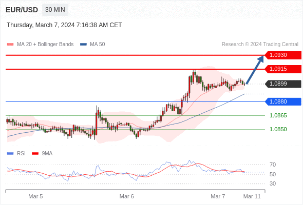 在 1.0880 之上,看涨,目标价位为 1.0915 ,然后为 1.0930 。