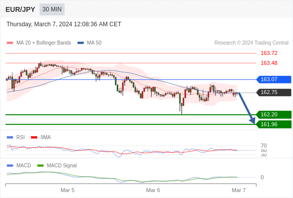 如突破 163.07 ,EUR/JPY 目标方向为 163.48 和 163.72 。