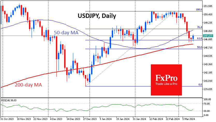 FxPro高级分析师Alex Kuptsikevich指出:美元走软伴随着美元兑美元自上月底以来的下跌,但这也可以被视为从12月底的低点140.3至上月高点150.8的修正。该货币对的买盘位于61.8%的水平,体现了经典的斐波那契模式。