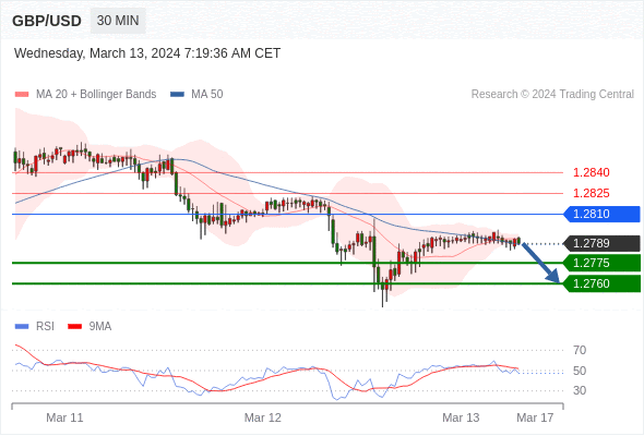 在 1.2810 之下,看跌,目标价位为 1.2775 ,然后为 1.2760 。