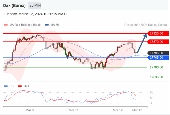 在 17765.00 之上,看涨,目标价位为 17870.00 ,然后为 17925.00 。