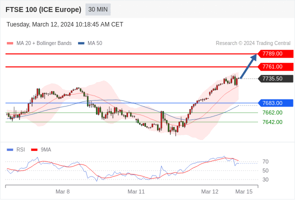 在 7683.00 之上,看涨,目标价位为 7761.00 ,然后为 7789.00 。