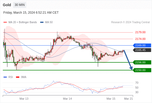 在 2169.00 之下,看跌,目标价位为 2156.00 ,然后为 2150.00 。
