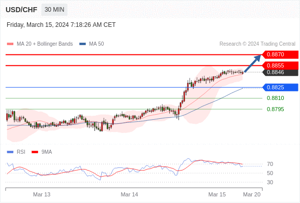 在 0.8825 之上,看涨,目标价位为 0.8855 ,然后为 0.8870 。