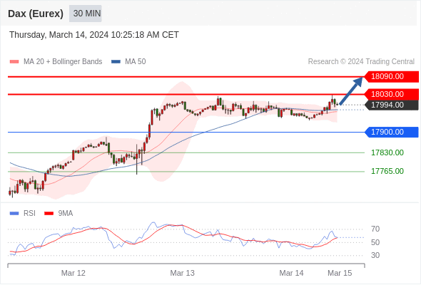 德国DAX指数期货 (Eurex)? (H4)? 当日内: 在17900.00之上,看涨。