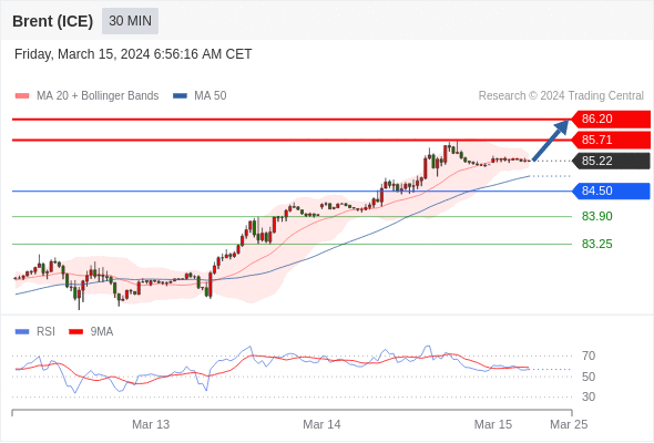 在 84.50 之上,看涨,目标价位为 85.70 ,然后为 86.20 。