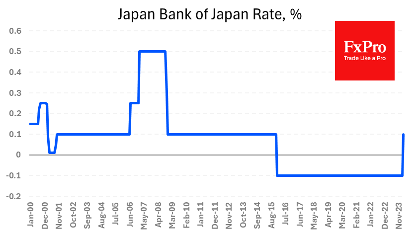 FxPro高级分析师Alex Kuptsikevich指出:日本央行将利率从-0.1%提高至0.0%至0.1%。央行将在商业银行的资产负债表上收取0.1%的费用,这是它自2016年以来首次这样做。日本央行还拒绝进一步购买房地产ETF和信托基金,并拒绝控制收益率曲线。不过,目前央行将把政府债券的购买保持在“大致相同的水平”。