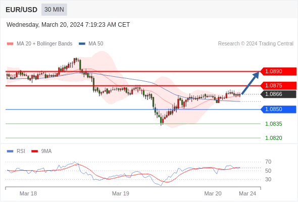 在 1.0850 之上,看涨,目标价位为 1.0875 ,然后为 1.0890 。