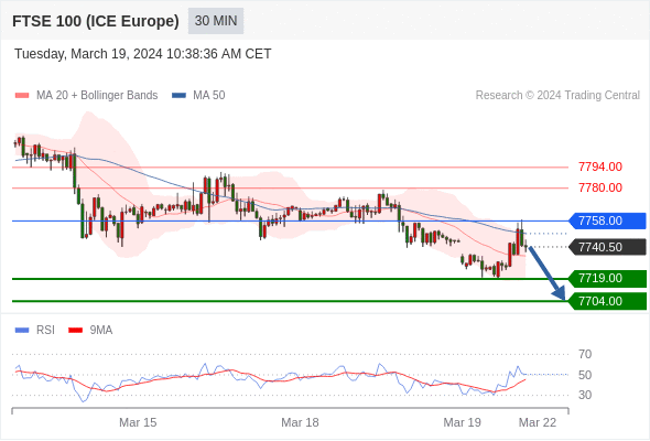 在 7758.00 之下,看跌,目标价位为 7719.00 ,然后为 7704.00 。