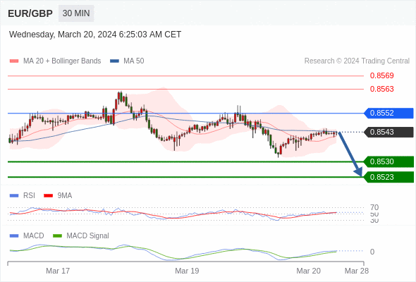 欧元/英镑 当日内: 在进一步下跌之前,反弹至 0.8552 附近。