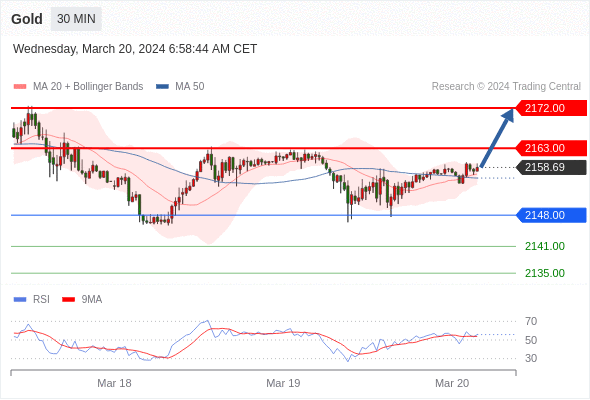 在 2148.00 之上,看涨,目标价位为 2163.00 ,然后为 2172.00 。