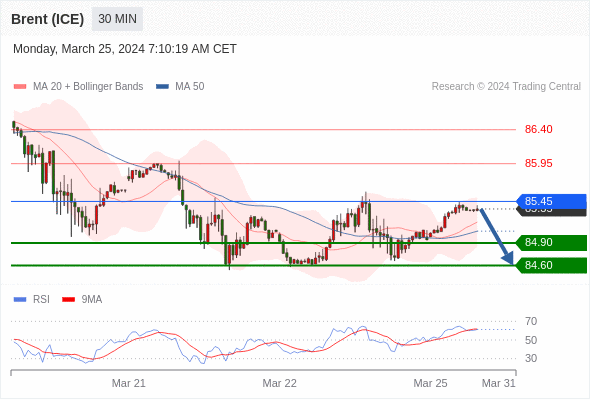 在 85.45 之下,看跌,目标价位为 84.90 ,然后为 84.60 。