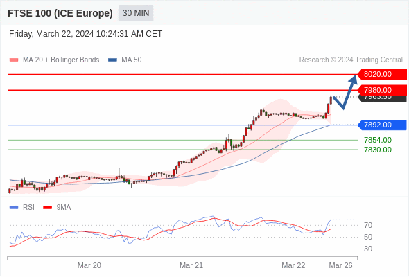 在 7892.00 之上,看涨,目标价位为 7980.00 ,然后为 8020.00 。