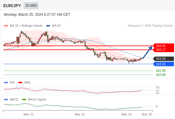 如跌破 163.31 ,EUR/JPY 目标方向定在 162.90 和 162.66 。