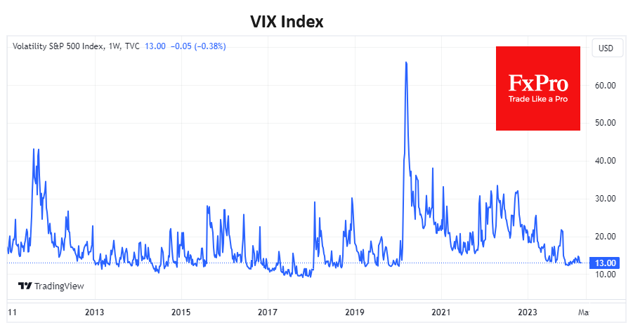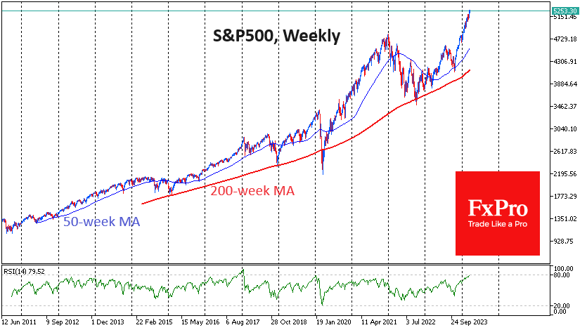 FxPro高级分析师Alex Kuptsikevich指出:标准普尔500指数的波动幅度不到2.5%。市场频繁的小幅回调为进一步买入奠定了基础。这种类型的反弹在成熟的牛市中很常见,这些牛市已经有足够的推力离开底部,但还没有努力走高。