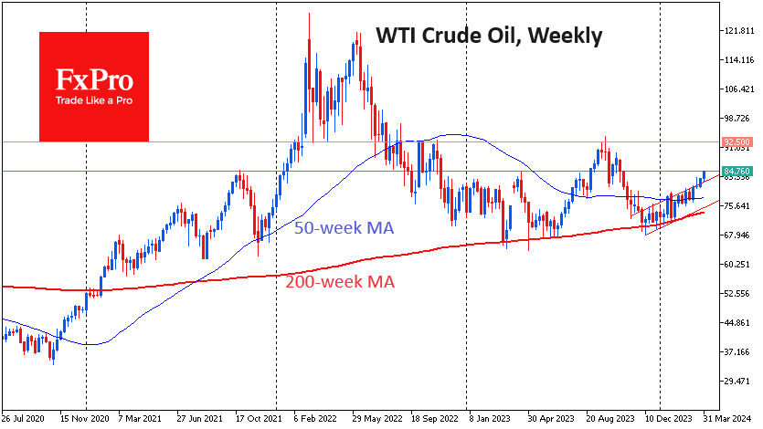 价格图表清楚地显示了自3月下半月以来的加速增长,当时上周上升通道的上边界变成了支撑位。我们还在关注“黄金十字架”的形成,可能会在未来几天吸引更多的投机性买盘。