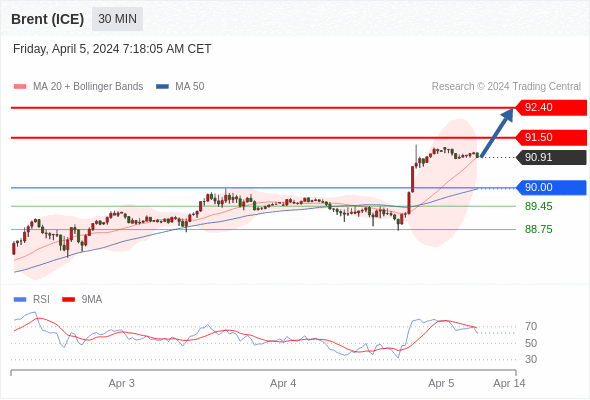 在 90.00 之上,看涨,目标价位为 91.50 ,然后为 92.40 。