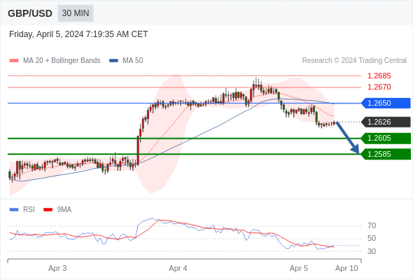 在 1.2650 之下,看跌,目标价位为 1.2605 ,然后为 1.2585 。