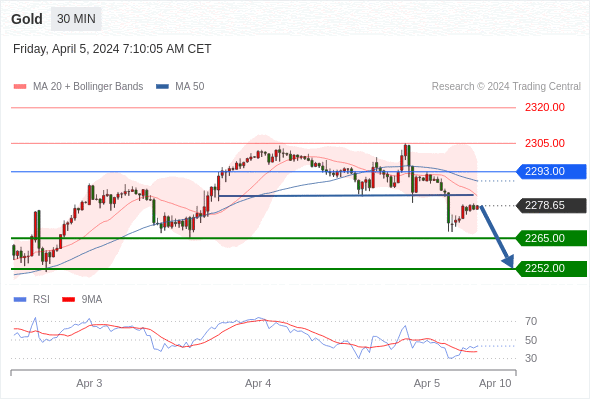 在 2293.00 之下,看跌,目标价位为 2265.00 ,然后为 2252.00 。