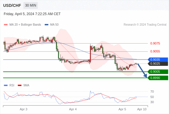 在 0.9035 之下,看跌,目标价位为 0.9005 ,然后为 0.8990 。