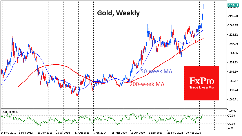 FxPro高级分析师Alex Kuptsikevich指出:金价目前的上涨比之前的长期牛市周期更为活跃。2011年,多年的上涨之后是两年的盘整,随后被三年的熊市所替代。