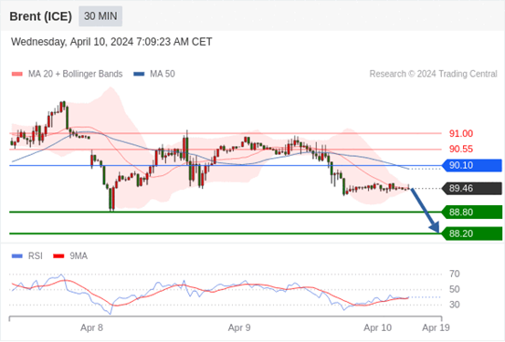 在 90.10 之下,看跌,目标价位为 88.80 ,然后为 88.20 。