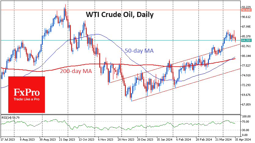 首先,我们看到3月底油价增长加速,目前的回落符合上涨趋势。在上一个峰值(82.50-83.0美元)和上一个本地底部(80.50美元)附近的价格动态值得密切关注。从这些支撑位之一反弹,将强化石油仍处于牛市的观点。