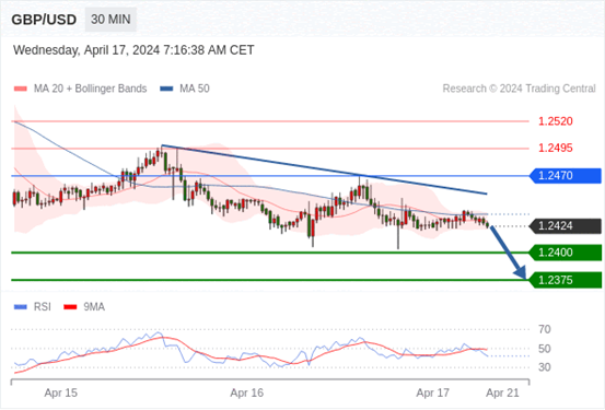 在 1.2470 之下,看跌,目标价位为 1.2400 ,然后为 1.2375 。