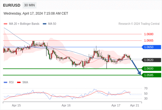 欧元/美元 当日内: 短期关键阻力位在1.0650。