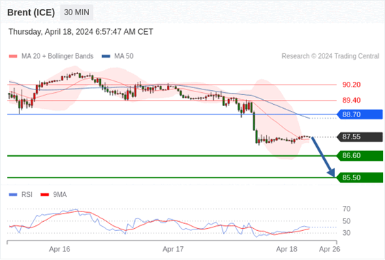 在 88.70 之下,看跌,目标价位为 86.60 ,然后为 85.50 。