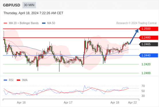 在 1.2440 之上,看涨,目标价位为 1.2480 ,然后为 1.2500 。