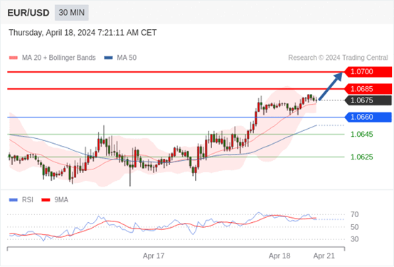 在 1.0660 之上,看涨,目标价位为 1.0685 ,然后为 1.0700 。