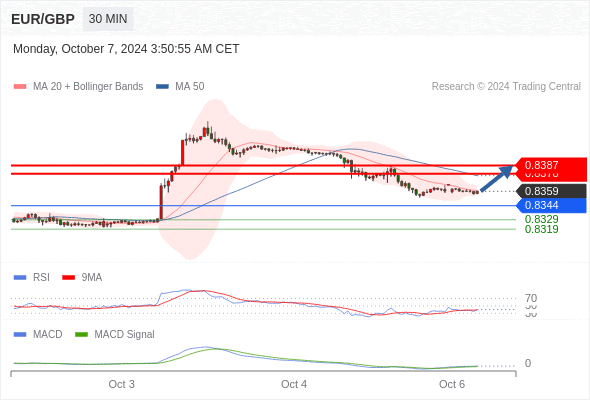 欧元/英镑 当日内: 有上涨的可能,目标价位定在 0.8387 。