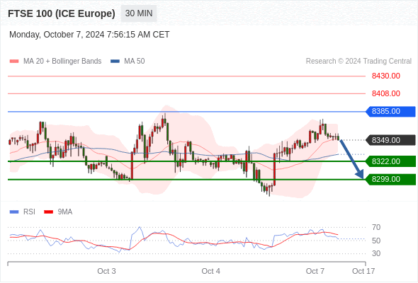 英国富时100指数期货 (Z4)? 当日内: 短期关键阻力位在8385.00。