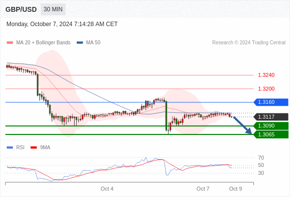 在 1.3160 之下,看跌,目标价位为 1.3090 ,然后为 1.3065 。