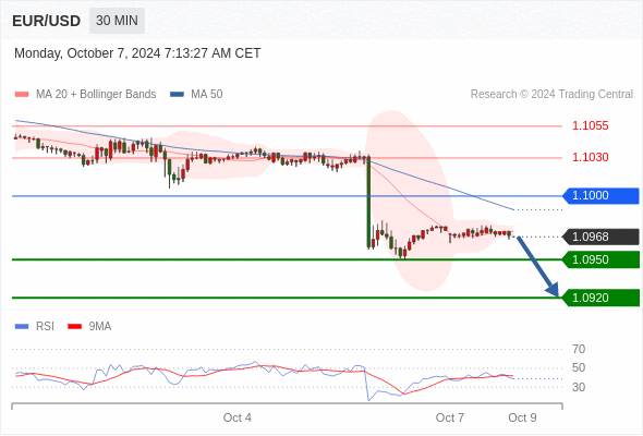 在 1.1000 之下,看跌,目标价位为 1.0950 ,然后为 1.0920 。