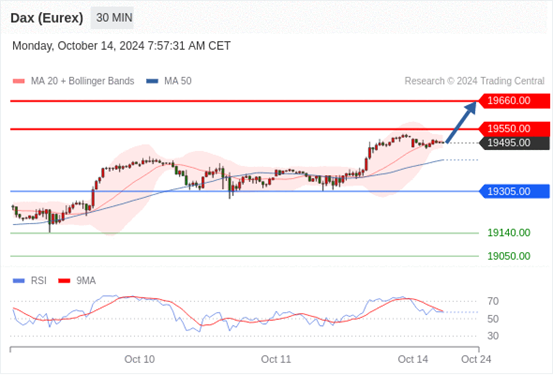 在 19305.00 之上,看涨,目标价位为 19550.00 ,然后为 19660.00 。