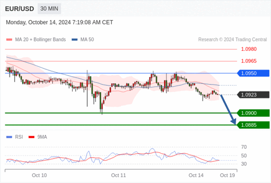 在 1.0950 之下,看跌,目标价位为 1.0900 ,然后为 1.0885 。
