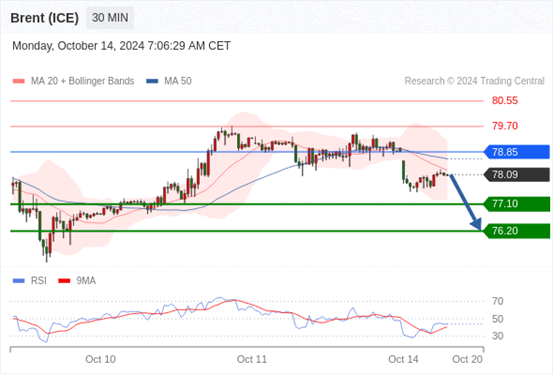 在 78.85 之下,看跌,目标价位为 77.10 ,然后为 76.20 。