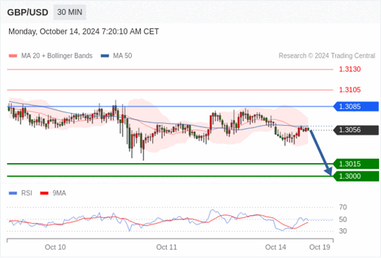 在 1.3085 之下,看跌,目标价位为 1.3015 ,然后为 1.3000 。