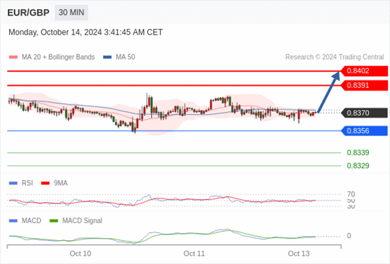 欧元/英镑 当日内: 有上涨的可能,目标价位定在 0.8402 。