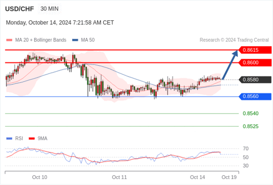 在 0.8560 之上,看涨,目标价位为 0.8600 ,然后为 0.8615 。