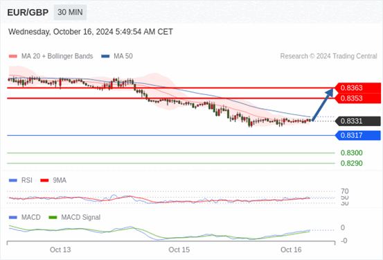 欧元/英镑 当日内: 有上涨的可能,目标价位定在 0.8363 。