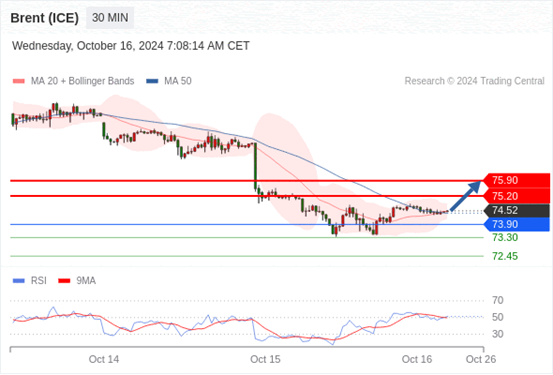 在 73.90 之上,看涨,目标价位为 75.20 ,然后为 75.90 。